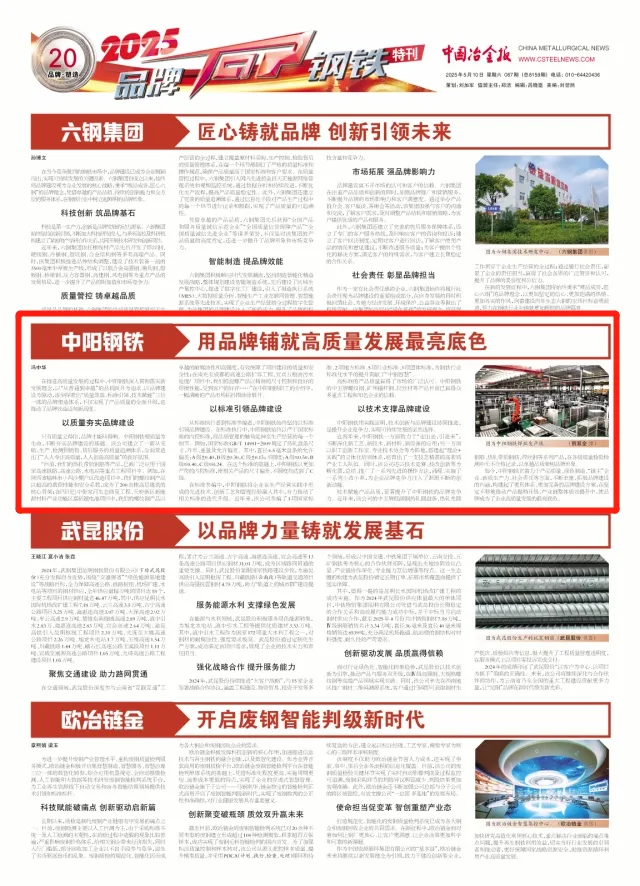 在推進高質量發(fā)展的過程中,中陽鋼鐵深入貫徹落實新發(fā)展理念,以“從普通到卓越”的品質躍升為追求、以品牌建設為驅動,逐步探索出“質量筑基、標準引領、技術賦能”三位一體的品牌塑造體系,不僅實現了產品質量的全面升級,還推動了品牌效益邁向新高度。