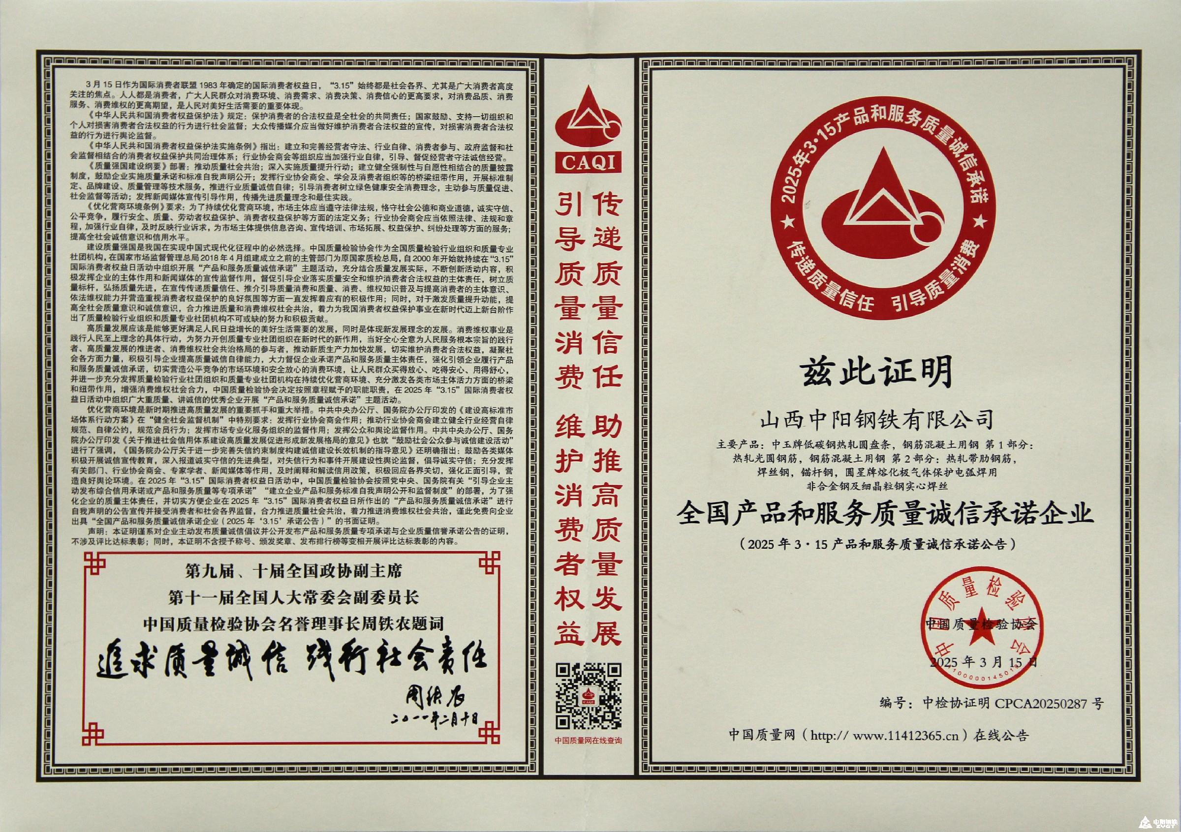 全國產(chǎn)品和服務(wù)質(zhì)量誠信承諾企業(yè)