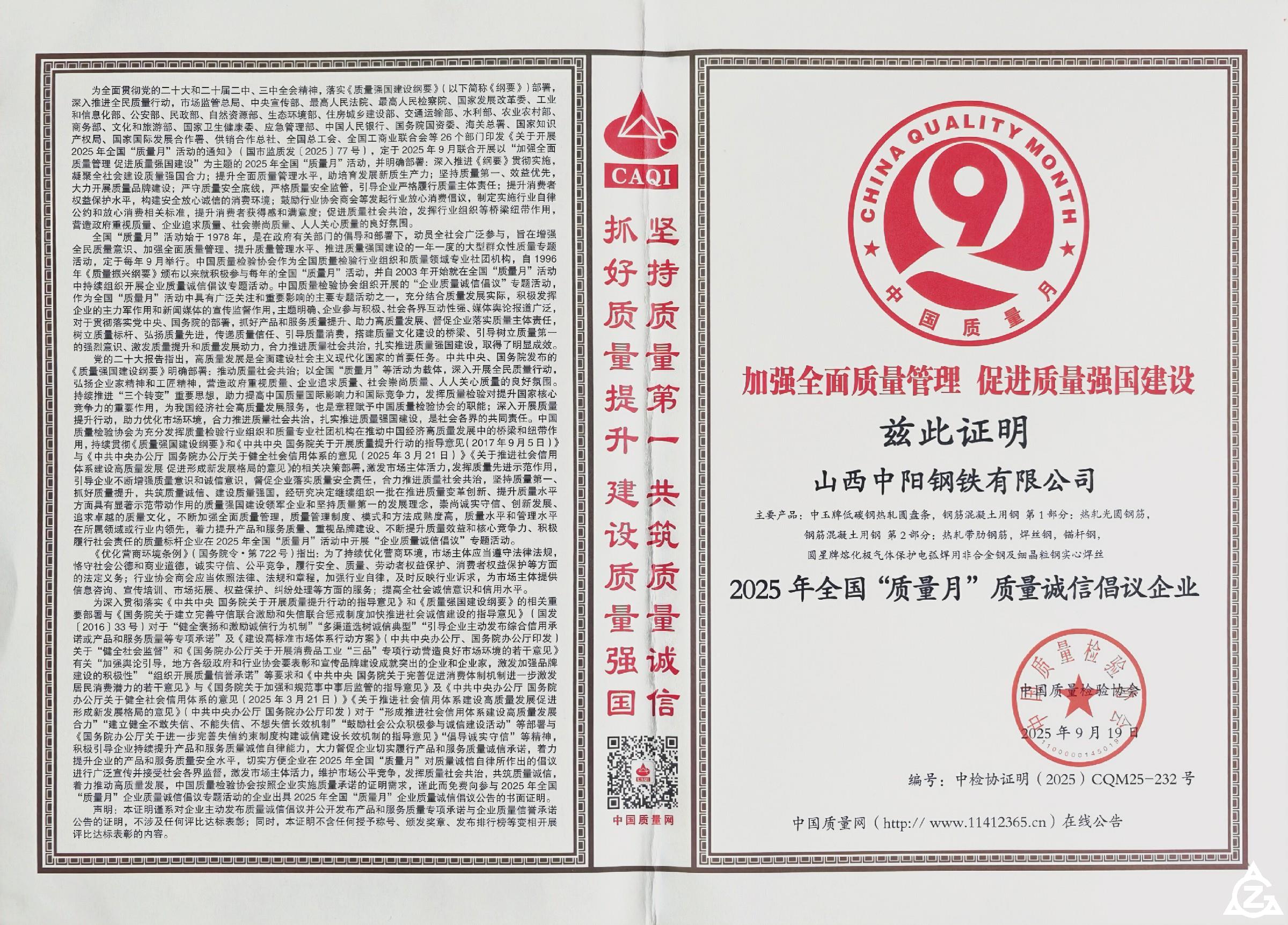 2025年全國“質(zhì)量月”質(zhì)量誠信倡議企業(yè)